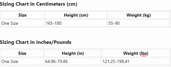 | One Size | 64.96-70.86 | 121.25-198.41 |