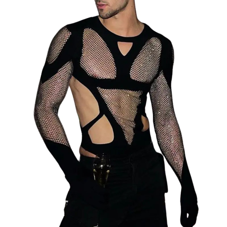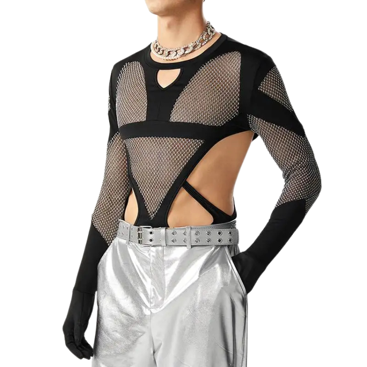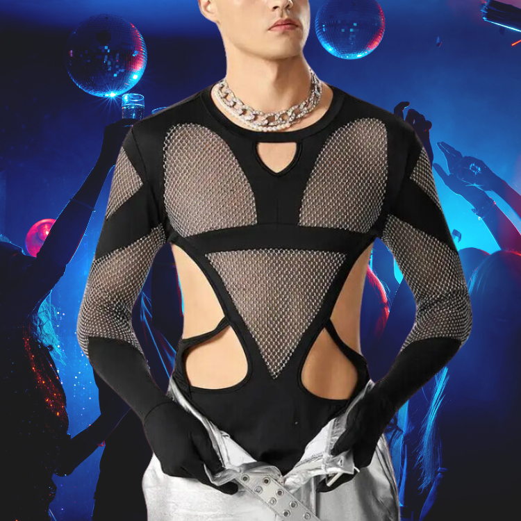 Imagine the heads turning as you make your grand entrance, the mesh fabric twinkling under the club lights like a constellation of stars wrapped around your body. This isn't just clubwear; it's a statement piece that says you're here, you're queer, and you're fabulous. Channel the spirit of legendary party icons from Studio 54, bringing back the era when fashion was fearless and every dance floor was a runway.