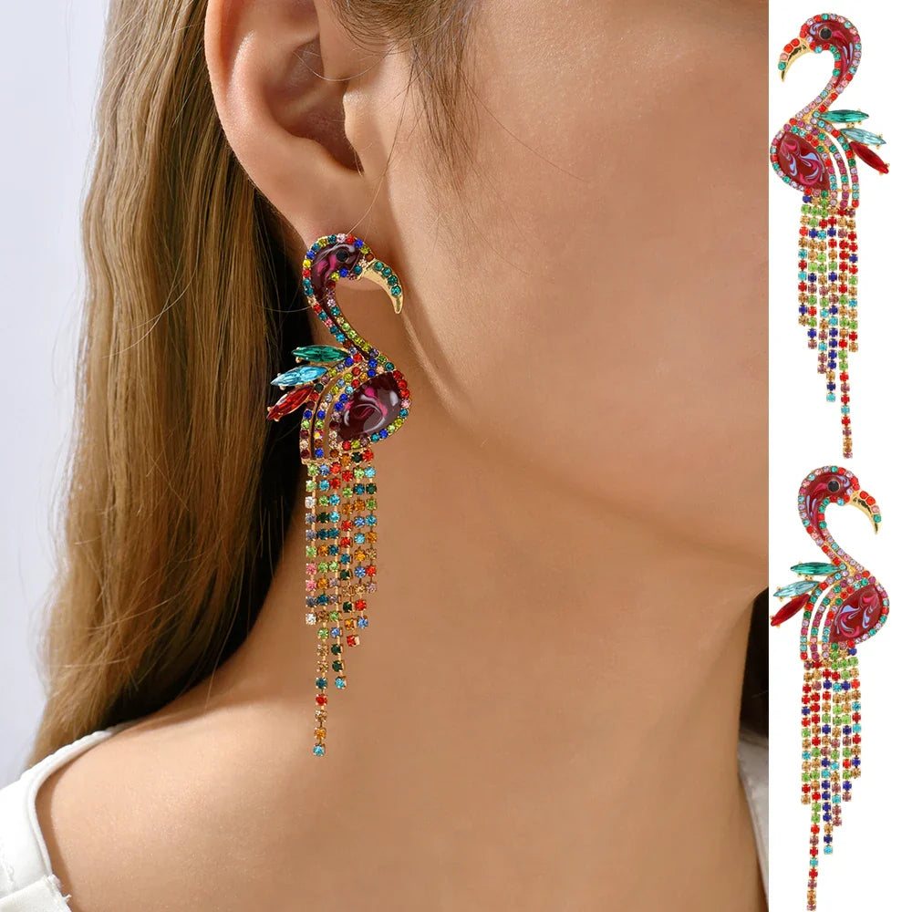 Flamingo Rhinestone Earrings Product Details