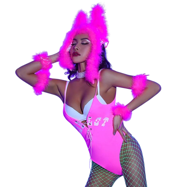 Step into a world where fantasy and reality blur with the Pink Rave Fever Dream Performance Bodysuit. This isn't just a piece of clothing; it's an experience, a statement, a way to unleash the fierce, fabulous you. Designed for women who know that confidence is their best accessory, this bodysuit will have you looking and feeling irresistibly hot, with a side of daring confidence that's sure to turn heads.