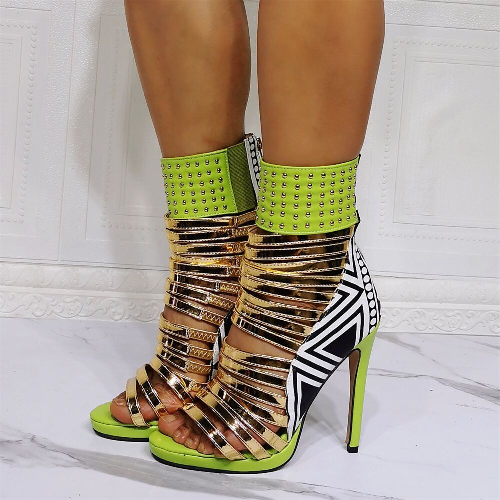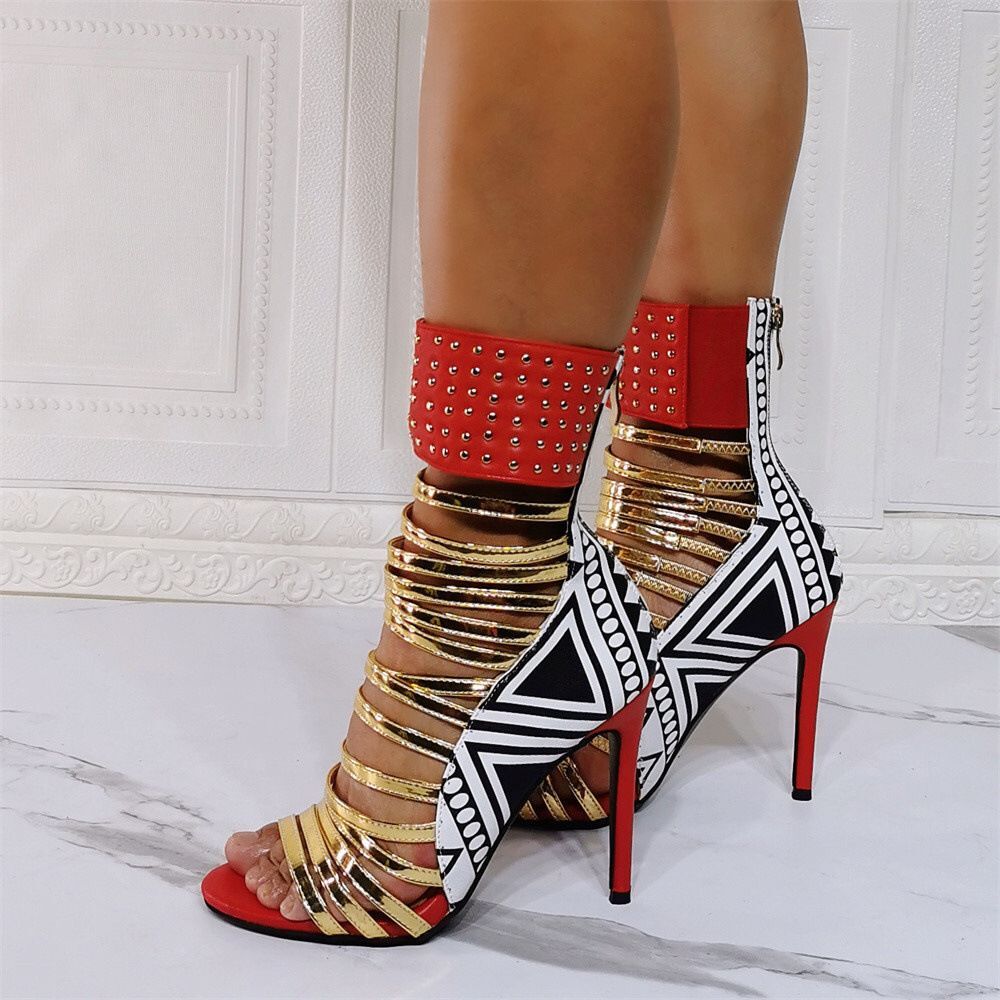 Unleash the power of the Pop Gladiator Metallic Heels, the footwear choice that says, 'Yes, I'm here. Yes, I'm fabulous. What are you going to do about it?' These heels are a glittering tribute to all the pop culture icons who taught us to sparkle and shine, from the gleaming brilliance of Prince to the bedazzling power of Lady Gaga.