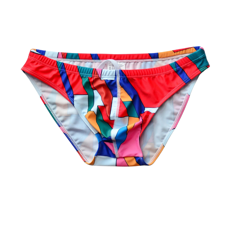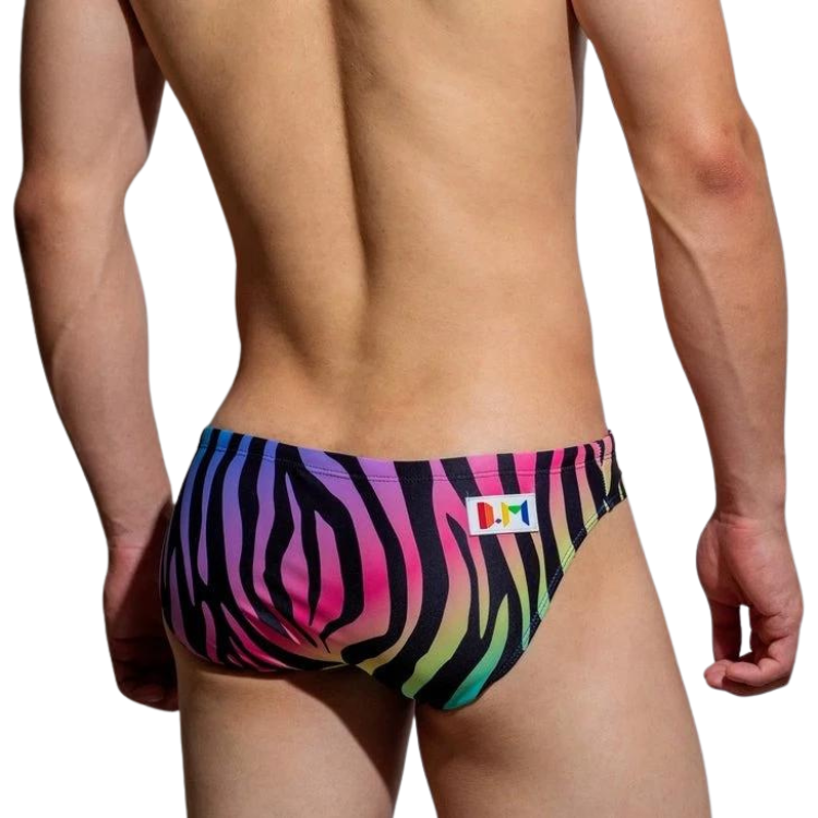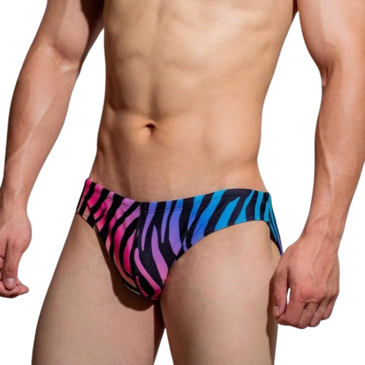 Crafted with a head-turning striped pattern, our Psychedelic Dive Swim Briefs are a nod to the classic and the avant-garde. The swirling colors are reminiscent of the disco balls and the glittering nightlife that has been a haven for queer expression. Strut your stuff in these briefs and channel your inner diva - think Studio 54 meets sun-kissed beach parties!