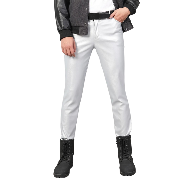 Crafted from the slickest faux leather, these pants are the epitome of 'hot.' They cling in all the right places, offering a tantalizing glimpse of the fabulous figure you rock. Pair them with a sparkly top for a night out or a casual shirt for that effortlessly chic look, and you're guaranteed to be the center of attention. Imagine strutting down the street, each step a beat in the dance of life, with onlookers pausing to admire your undeniable swag. That's the power of wearing these pants!
