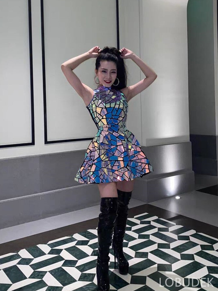 Are you ready to slay in our Purple Broken Mirror Sleeveless Dress? We're sure you are! After all, you were born this way, baby!