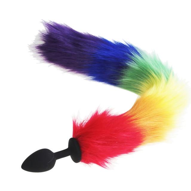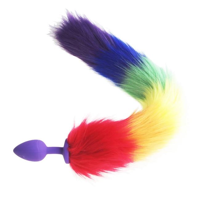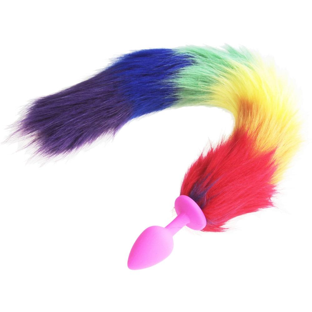 Take your sexual adventures to a fun and playful new place with this fun rainbow-colored tail plug sex toy. The narrow plug has a tapered tip and is made of smooth silicone for easy insertion.