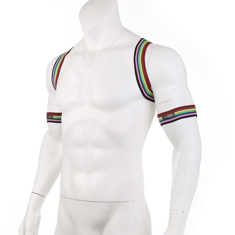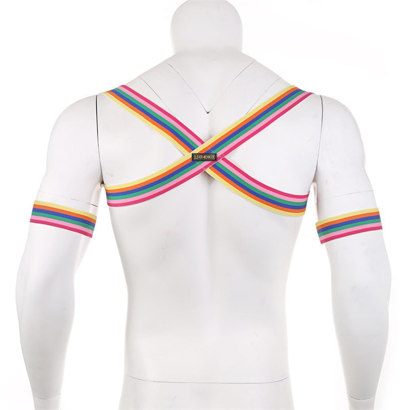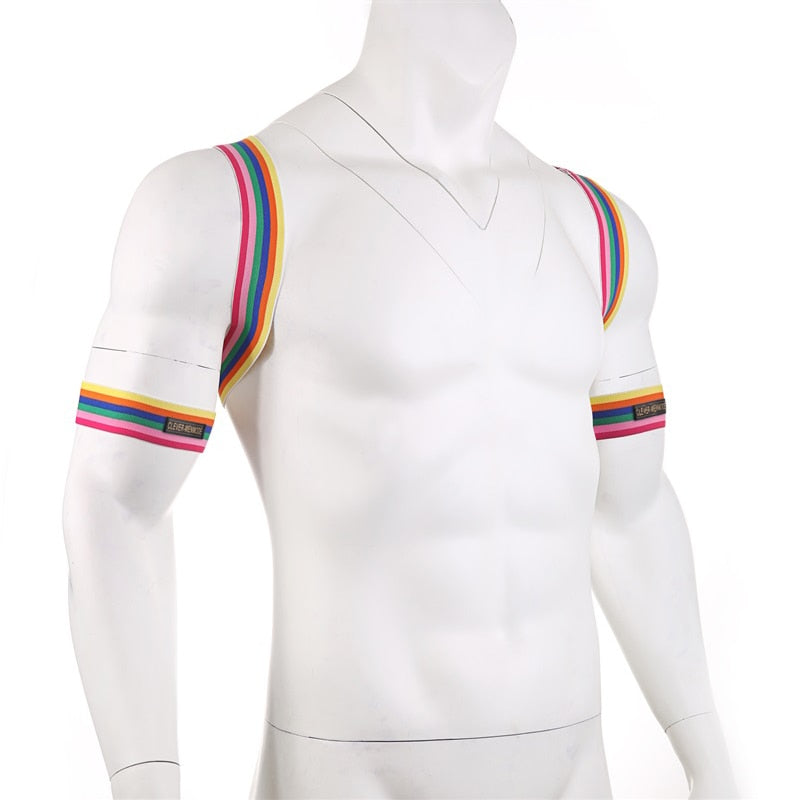 Perfect for wearing to a party, marching in a PRIDE parade, sending pics through Grindr, or using in the bedroom, this Rainbow Pride Elastic Harness is a perfect beginner harness. Try it out today!