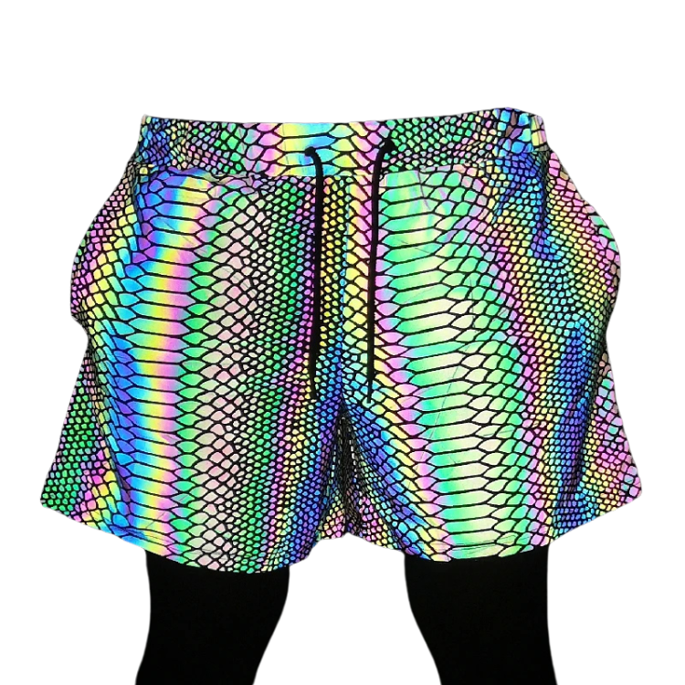 Unleash your inner serpent and slink into the spotlight with our Rainbow-Reflect Snake Street T-Shirt Shorts. Designed to make you the center of attention at any gathering, these shorts are not just a piece of clothing—they're a statement.