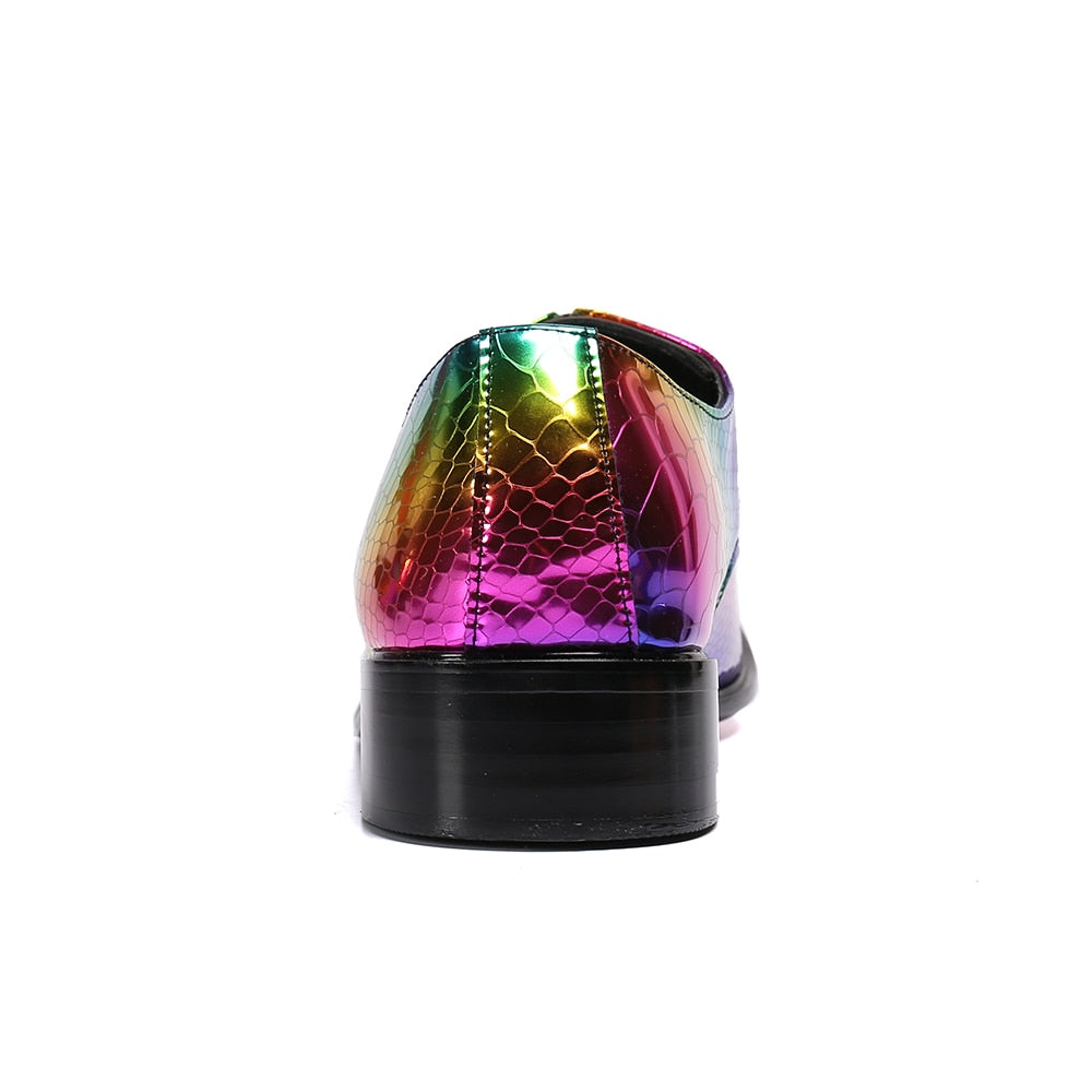 Elevate Your Style with Rainbow Snakeskin Wing-Tip Dress Shoes - Unleash Your Colorful Confidence!