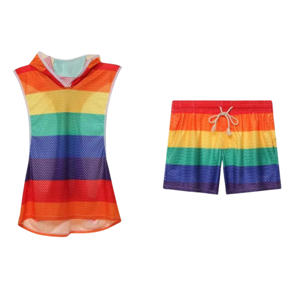 Unleash your brightest, boldest self with our Rainbow Striped Hooded Tank Top Shorts Two-Piece Set! It's not just clothing; it's a statement piece that screams, 'I'm here, I'm queer, and I'm fabulous!' Get ready to serve some serious rainbow realness that'll have you feeling like the main character in every room you strut into.