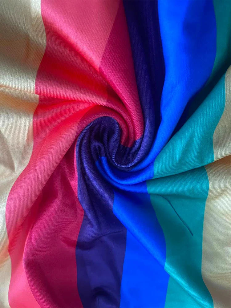 Imagine strutting into any room and owning it, draped in the colors of the rainbow. This prideful outfit isn't just about making an entrance; it's about making a statement. Each stripe is a stroke of confidence, every color a chapter of your story. And honey, let's talk about the fit! Crafted to hug every curve and contour, this Rainbow Stripes Pride 2-Piece Outfit is here to celebrate your body and showcase your best assets. Your ass and calves will be so well presented they'll deserve their own standing ovation!