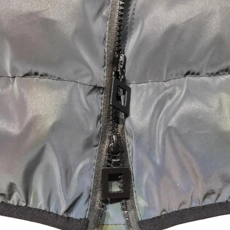 Crafted with the bold and the beautiful in mind, this puffer jacket doesn't just keep you warm; it sets the night on fire. The reflective material catches every light, ensuring you're the star wherever you are. And let's talk about that zipper, honey! It's not just a way to close your jacket; it's a runway-ready accessory that shines as bright as your fabulous personality. Plus, the hood isn't just practical; it's your dramatic flair for when you need that extra bit of mystery or protection from a bad hair day.