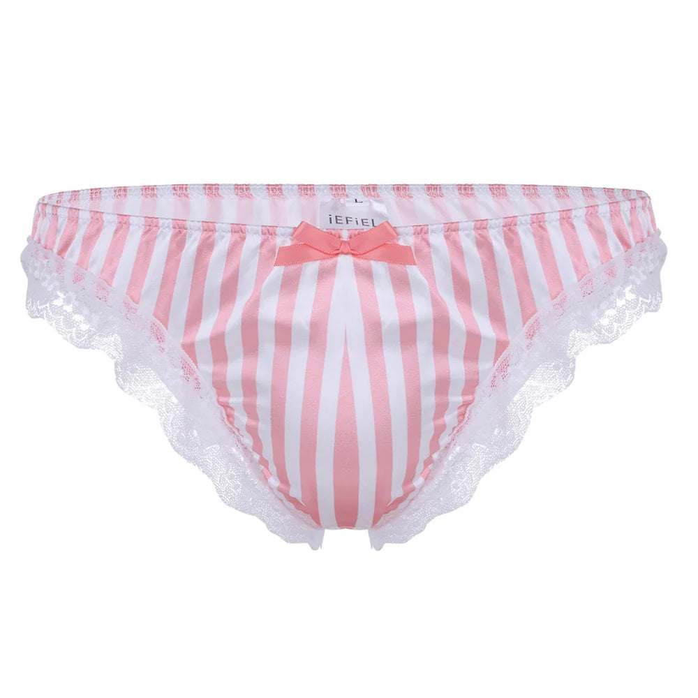 Satin Lace Candy Striper Blue Briefs Product Details: