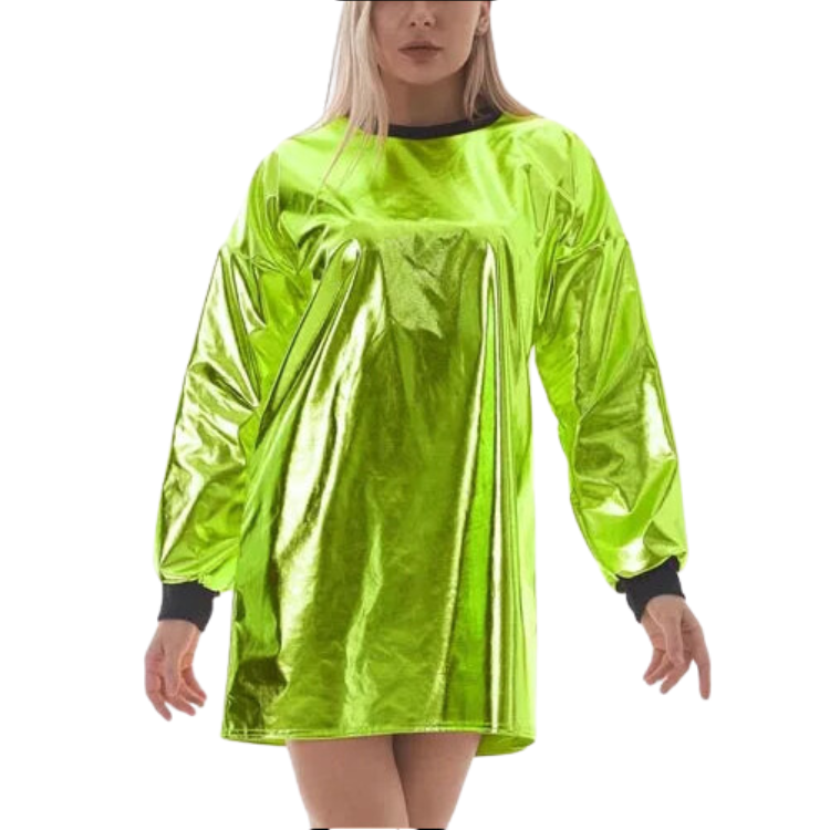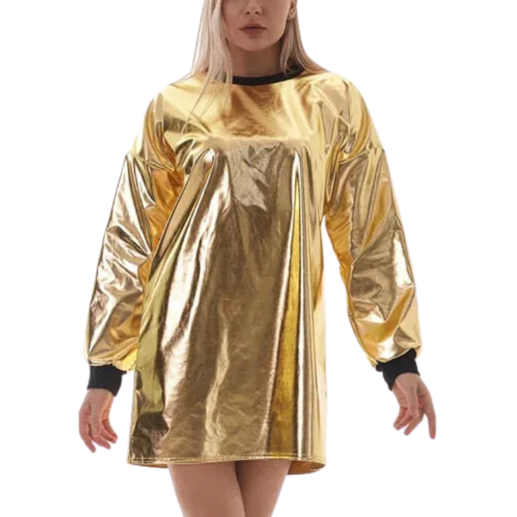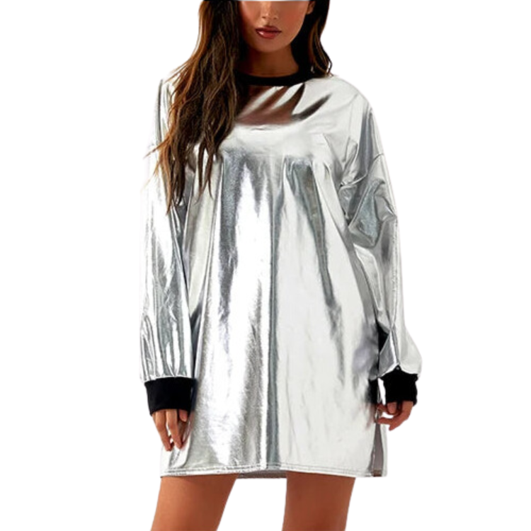 So, throw on your highest heels, add a splash of glitter, and prepare to own the night (or day)! The Scandi Pop Metallic Wetlook Mini Dress is here to ensure that you do more than just occupy space—you celebrate it, fill it with color, and leave a trail of stardust wherever you go.