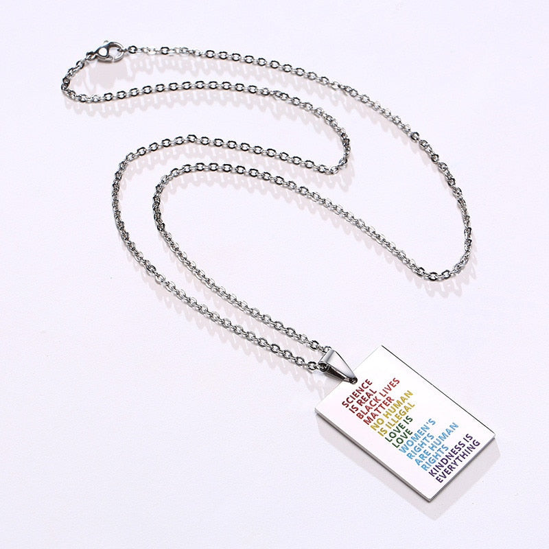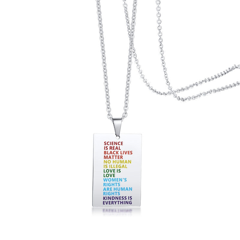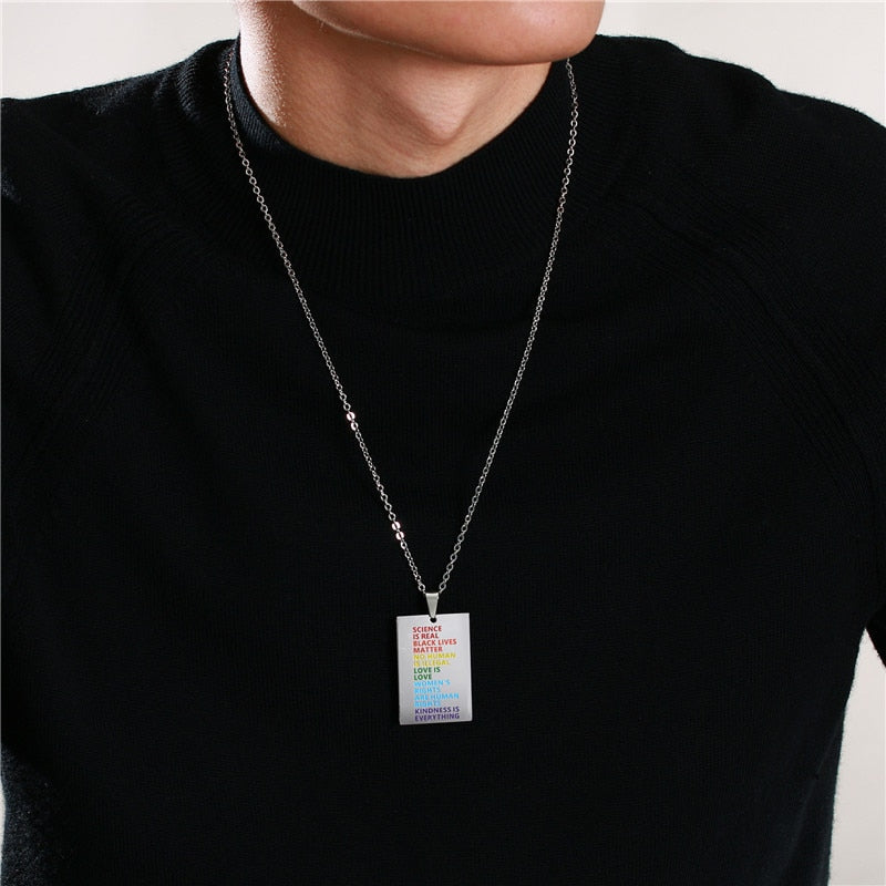/wp:paragraph Express yourself and be not afraid to put your pride on display. Look cool AF in this stunning necklace and show the world that you believe in science, equality for all, love is love, and most of all, that kindness is all that matters.