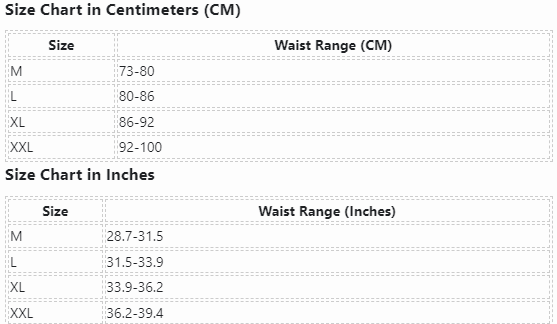 | Size | Waist Range (CM) |