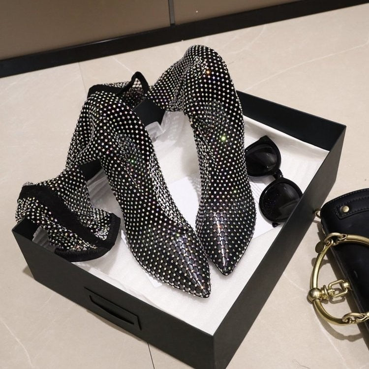 Introduce your inner glam self to the world in these super stunning Sexy Black Mesh High Heel Boots!