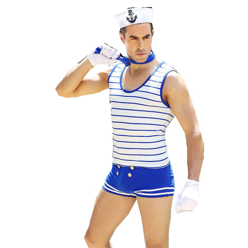 Wherever your sails take you, all eyes will be on you with the Sexy Gay Sailor costume, complete with a sailor hat, tie, and white gloves. The buttoned shorts will capture all the passenger's attention, while the sleeveless striped top will bring out your hard-earned sailor muscles.
