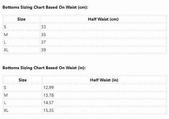 Bottoms Sizing Chart Based On Waist (cm):