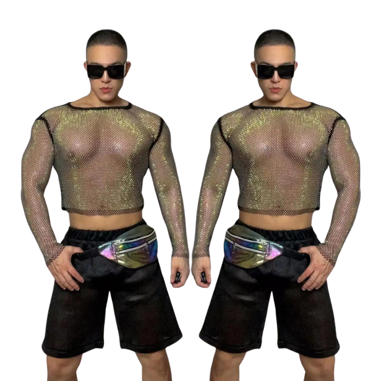 But wait, there's more! The Sexy Rainbow Rhinestone Mesh Hoodie Set isn't just about looking scorching hot (although, let's be real, you'll be serving serious heat). It's about empowerment, about strutting down the runway of life with confidence that's as dazzling as your outfit. Whether you're voguing at the club or sashaying down the street, this set is your armor, and every rhinestone is a badge of honor. So, pop your collar, flex those calves, and let your ass do the talking – because with this hoodie set, every day is a pride parade.