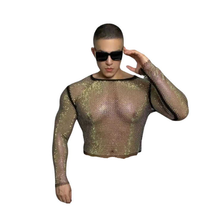 Step into the spotlight with a garment that glistens with every move. The rainbow rhinestones aren't just accessories; they're declarations of pride, shimmering with every shade of your fabulous personality. The mesh design whispers tantalizing tales of what lies beneath, offering a peek into your wild side while keeping them guessing. And honey, let's talk about the fit! This hoodie is crafted to accentuate your best assets, hugging your figure in all the right places. It's not just a look; it's a statement.