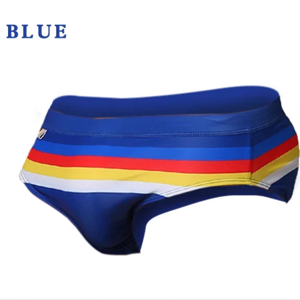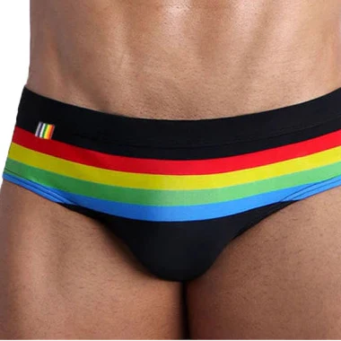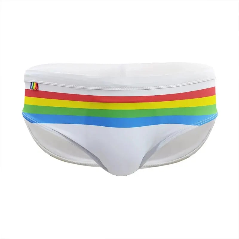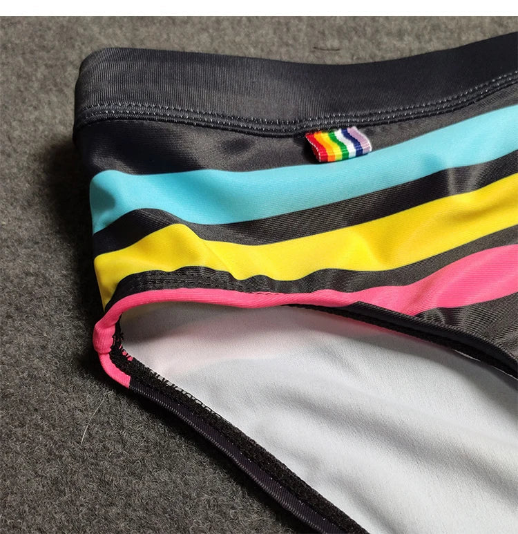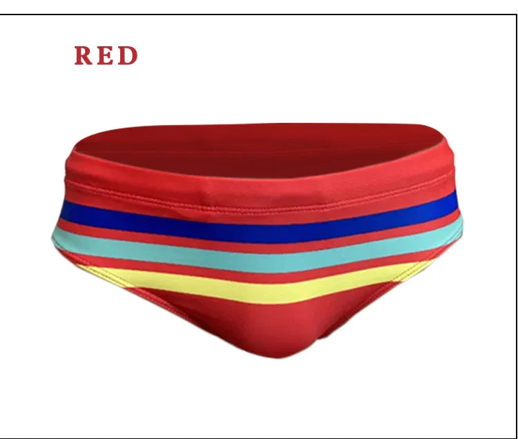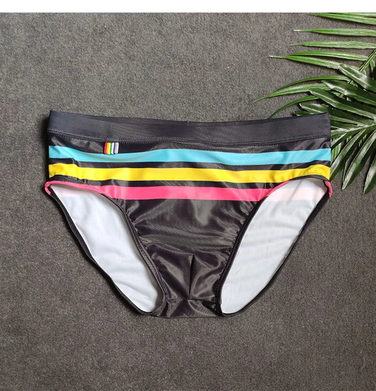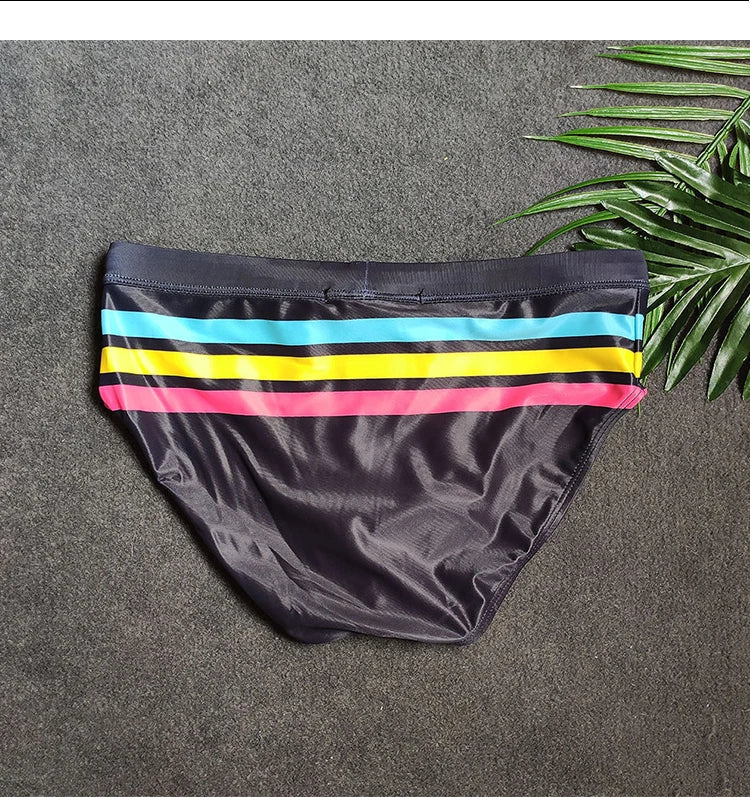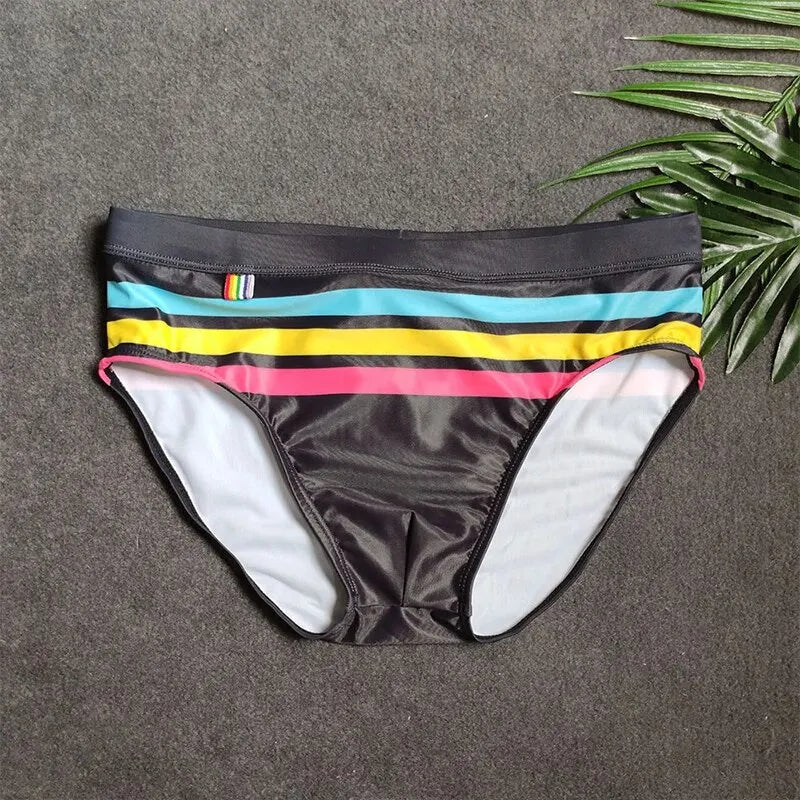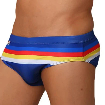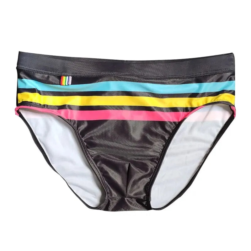 Let's get soaking wet! Lap up those cosmic rays and show off your gorgeous body in our funky and sexy Sexy Striped Swim Briefs.