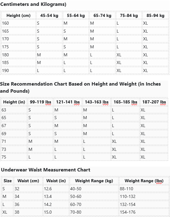 | Size | Waist (cm) | Waist (in) | Weight Range (kg) | Weight Range (lbs) |