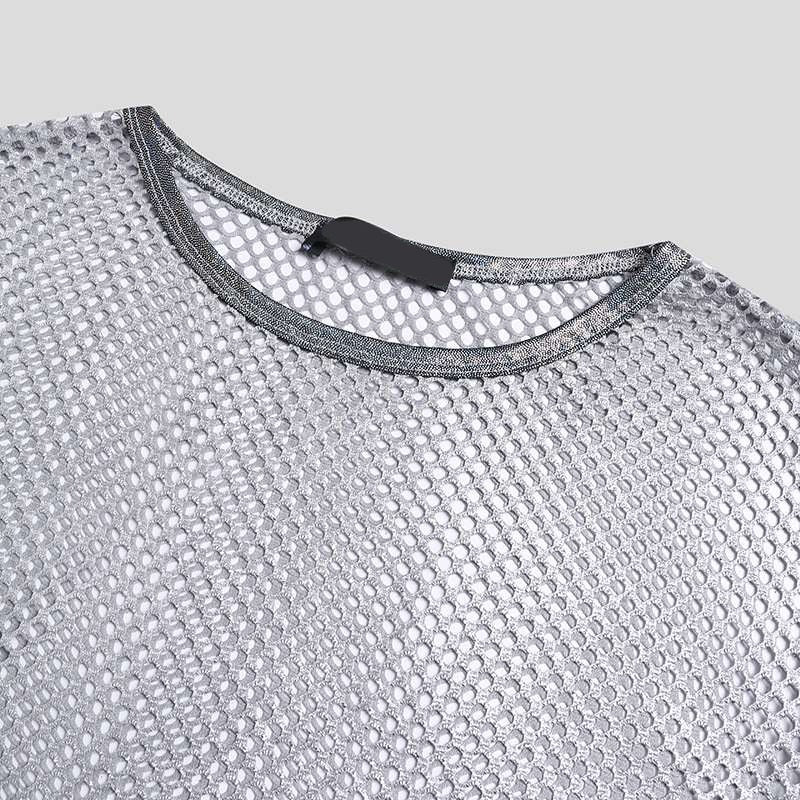Looking for an iconic streetwear look that ensures you stand out from the crowd? Look no further than this Iconic Silver Mesh See Through Top!