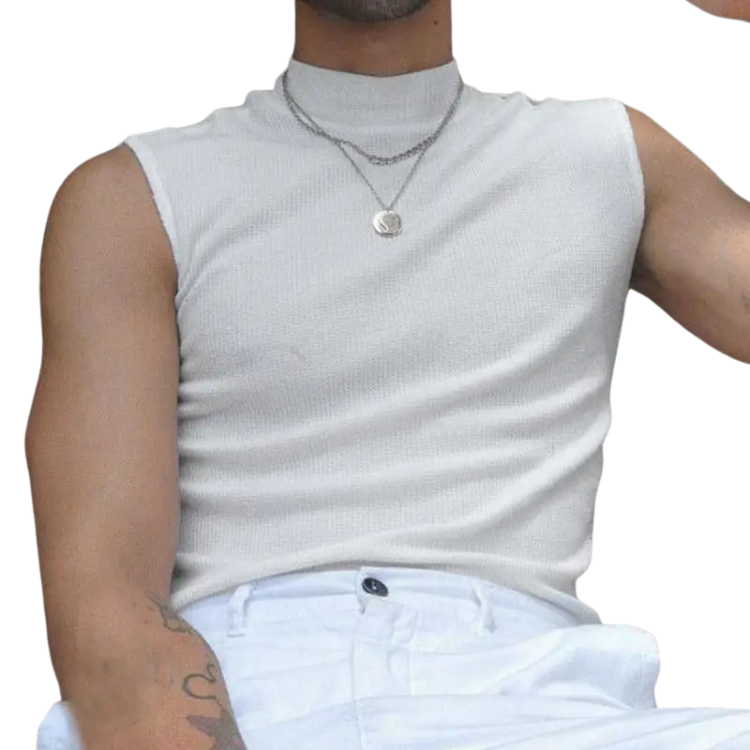 With a turtleneck design that adds an unexpected twist to the classic tank, this top is for those who command attention and aren't afraid to stand out in a crowd. Imagine strutting into your next queer gathering or rooftop party, channeling every bit of the supermodel vibe you know you possess. It's not just clothing; it's armor, ready to amplify your confidence as you celebrate every shade of your fabulous self.