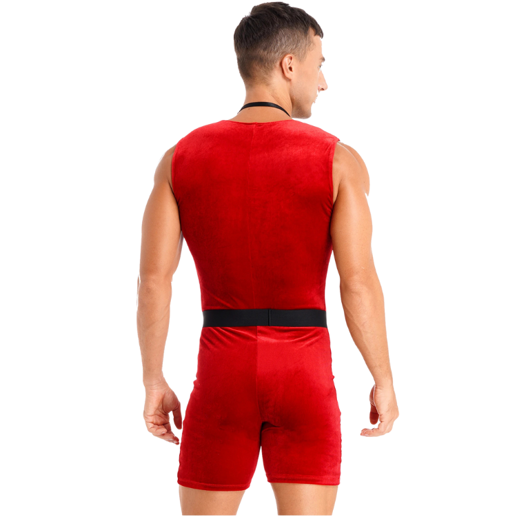 Sleeveless Soft Velvet Christmas Jumpsuit Product Details: