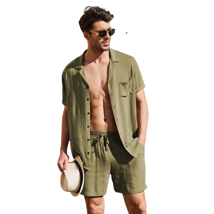 Inspired by the iconic flair of European summer aesthetics—think sun-kissed skin against vibrant, eye-catching patterns—this outfit combines comfort with sheer magnetism. The short sleeve shirt clings just right, offering a glimpse of what lies beneath, while the matching shorts hug your hips and flaunt your legs, making every sidewalk your runway.