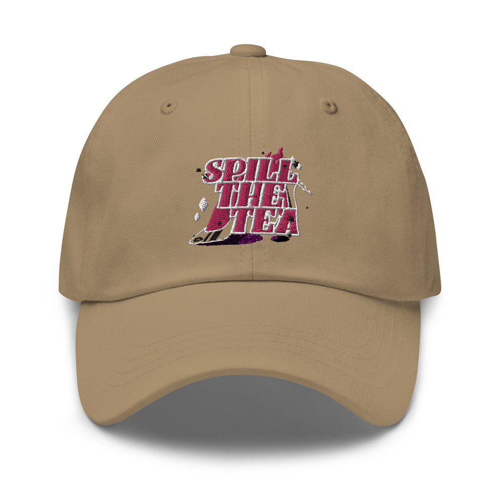 With its unstructured, 6-panel, low-profile design and six embroidered eyelets for that extra breath of fresh air, this Spill The Tea Cap is practically singing 'Born This Way' to your scalp. And let's not forget the adjustable strap with an antique buckle – because we all love a bit of vintage, don't we?