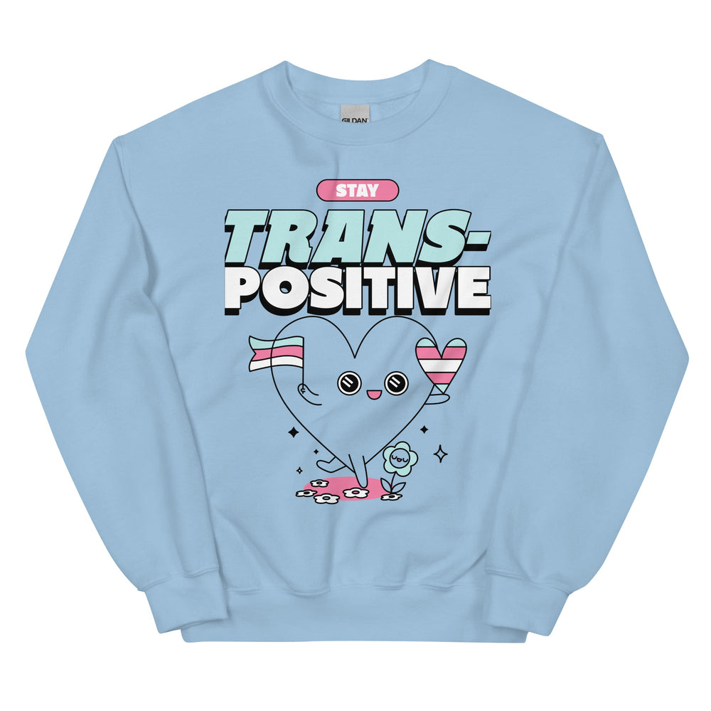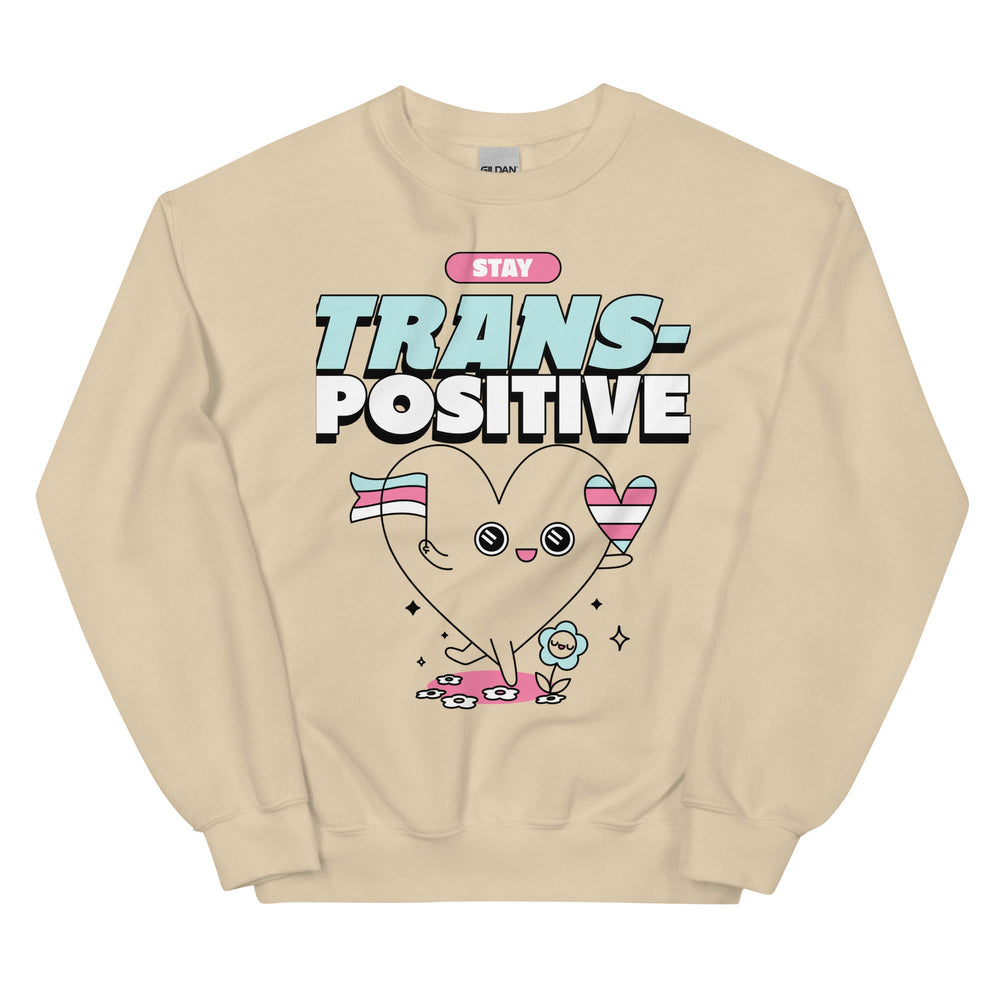 Wrap yourself in the splendor of queer warmth with our one-of-a-kind Stay Trans-Positive Unisex Sweatshirt, a singular garment designed to radiate pride, joy, and a touch of sass with every thread. This isn't just a sweatshirt; it's a declaration of fabulousity, a cozy must-have for your queer wardrobe that ensures you’re wrapped in Pride, whether you're cuddling on the couch or making a statement in the streets.
