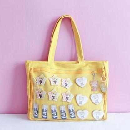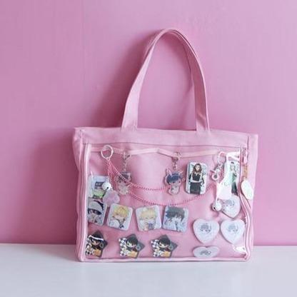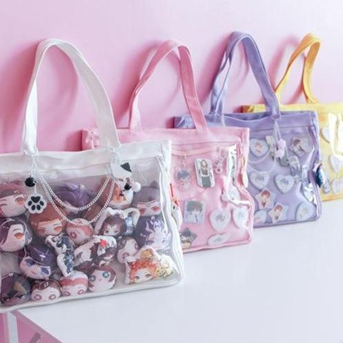 Are you totally pin obsessed??!! Then this Transparent Canvas Handbag with a PVC display window is the perfect way to proudly display your growing pin collection on the go!
