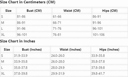 | Size | Bust (CM) | Waist (CM) | Hips (CM) |