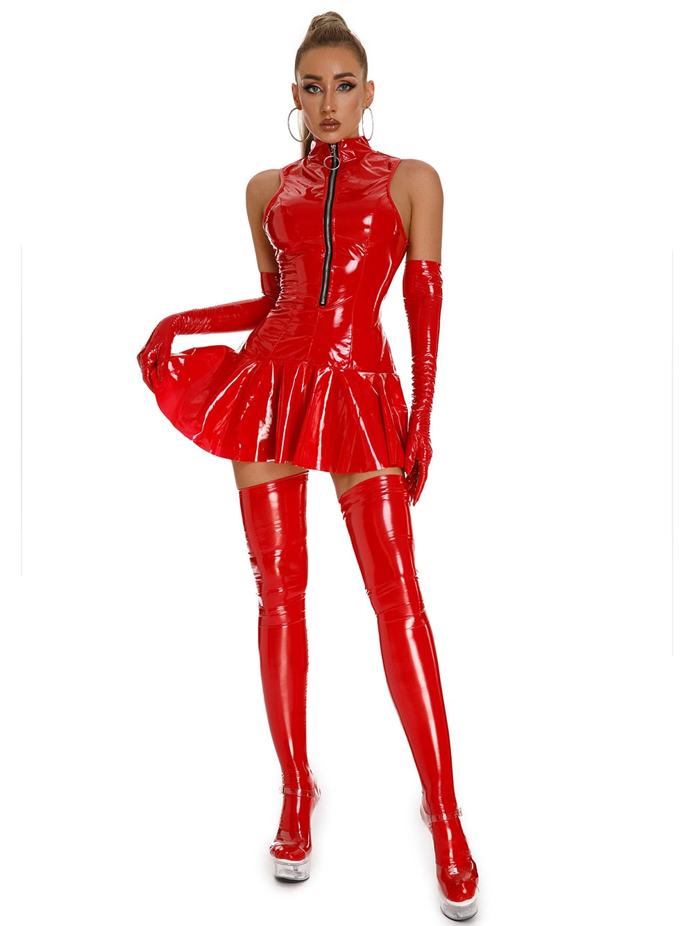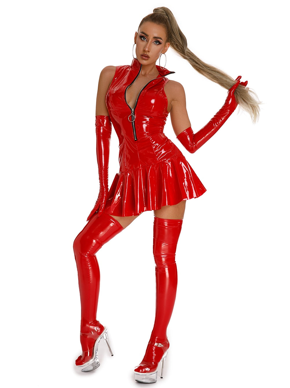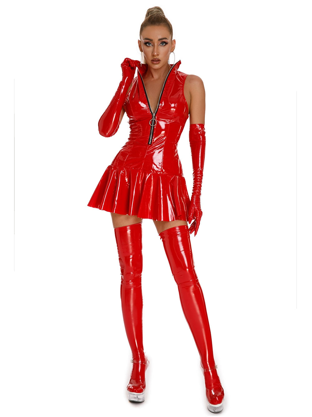 Empower Your Radiance with the Ultra-Shine PVC Fetish Mini Dress Club