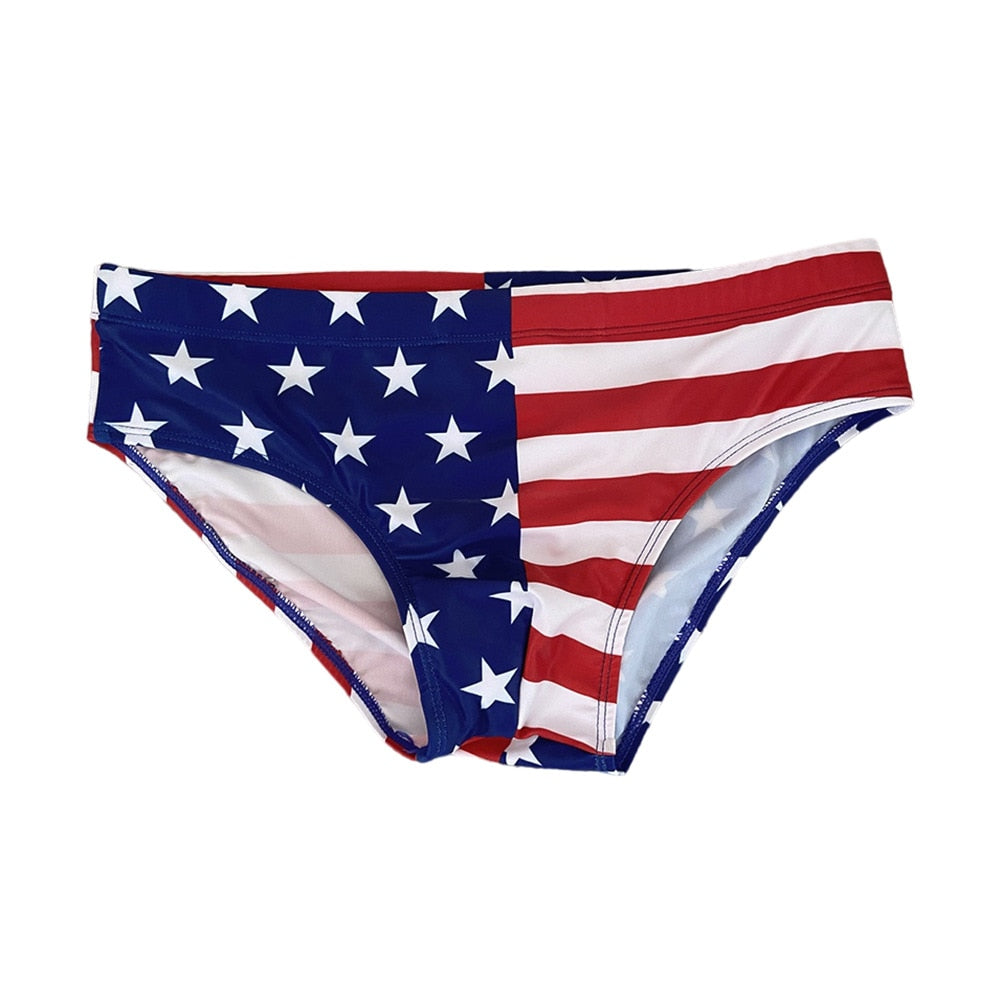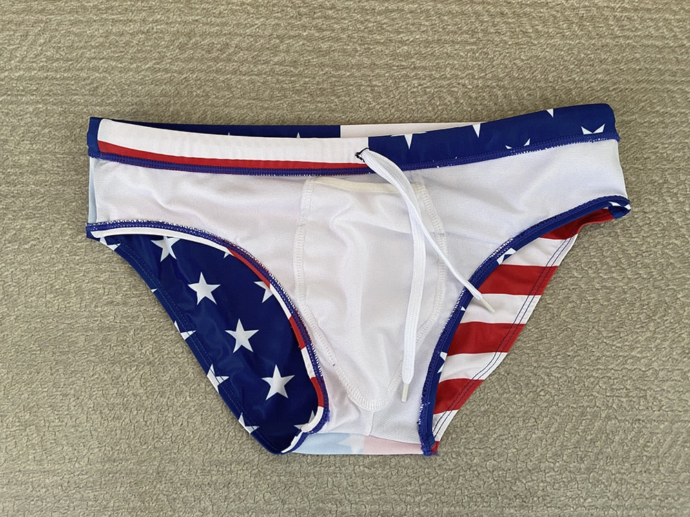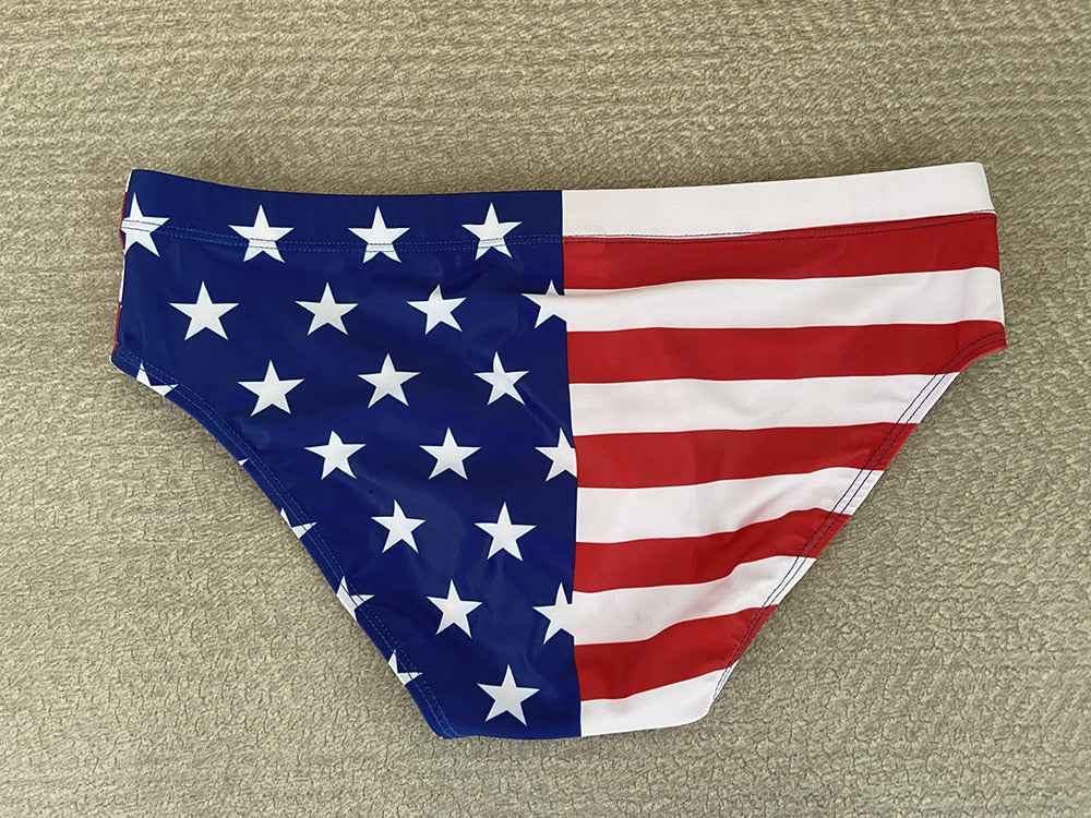 Let's get soaking wet! Lap up those cosmic rays and show off your gorgeous body in our funky and sexy USA Flag Swim Briefs. The lifeguard on duty will have difficulty not staring at that booty of yours. Anchors away, you're off to bigger and better things!