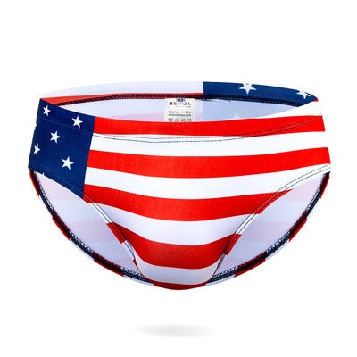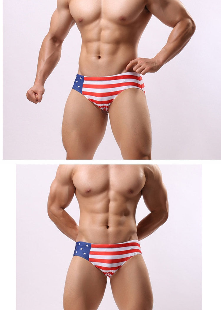 Let's get soaking wet! Lap up those cosmic rays and show off your gorgeous body in our funky and sexy USA Wide Swim Briefs. The lifeguard on duty will have difficulty not staring at that booty of yours. Anchors away, you're off to bigger and better things!