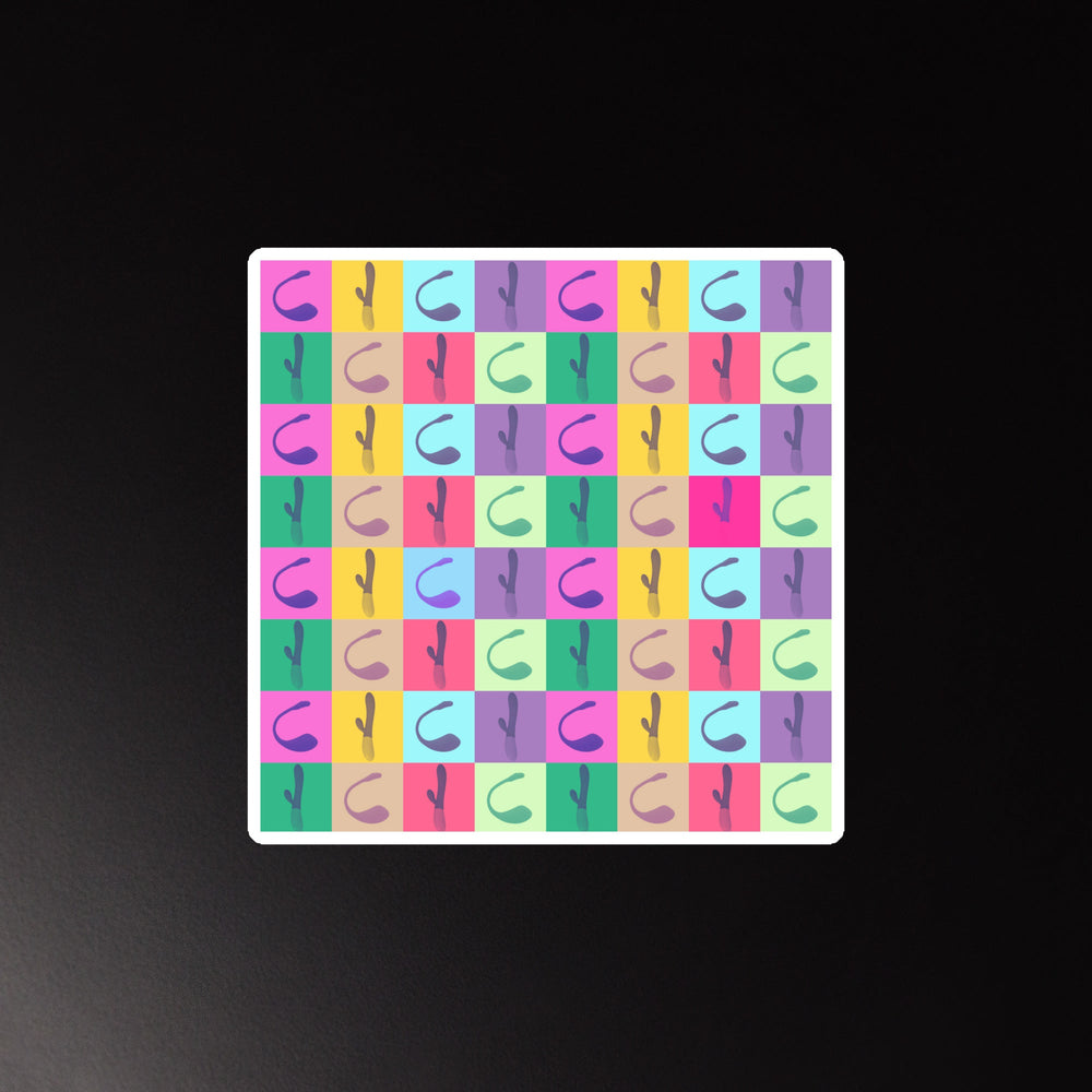 The Vibrator Pop Art Magnet beckons you to adorn your realm with adventures, inspirations, or simply your exquisite selection of takeaway menus. It’s the quintessential platform for your photos, notes, and gentle reminders of life’s boundless joy. And because we cherish the diversity of expression, the Vibrator Pop Art Magnet comes in sizes to match every proclamation of your fabulous essence, from the coy 3″×3″ to the grand 6″×6″, each size a tribute to your unique panache.