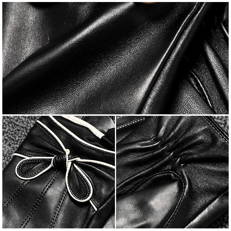 Crafted from high-quality leather, these gloves are not only stylish, but also incredibly practical. The black leather is sleek and sophisticated, while the cute bow adds a pop of fun and femininity. And with the cozy lining, you'll stay warm and toasty no matter how chilly the weather gets.