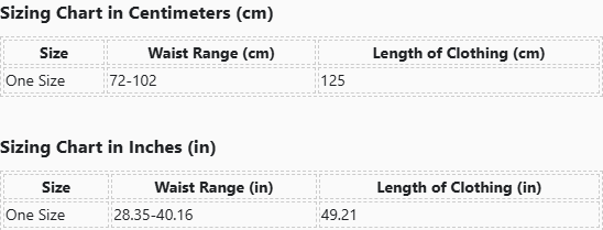 | Size | Waist Range (cm) | Length of Clothing (cm) |