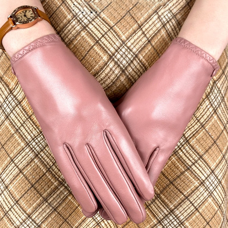 Crafted from high-quality leather and available in a range of eye-catching colors including pink, beige, black, and sand green, these gloves are designed to make a statement. The luxurious leather is soft and supple, conforming to your hands for a perfect fit, while the bold color options allow you to express your unique style and personality.