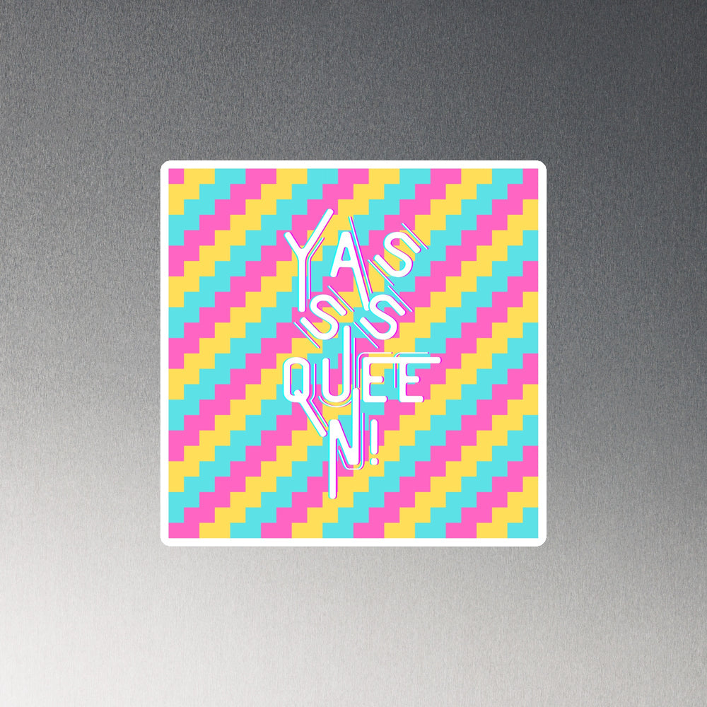 Crafted from the most supple 0.5 mm vinyl—for flexibility is our mantra—and topped with a matte finish so luxurious it could waltz down the runways of Milan, this Yasss Queen Magnet stands not just as a magnet but as a vibrant proclamation of style. Its magnetic black backing, steadfast as the legacy of legendary divas, elevates the Yasss Queen Magnet from mere functionality to a beacon of identity and elegance.